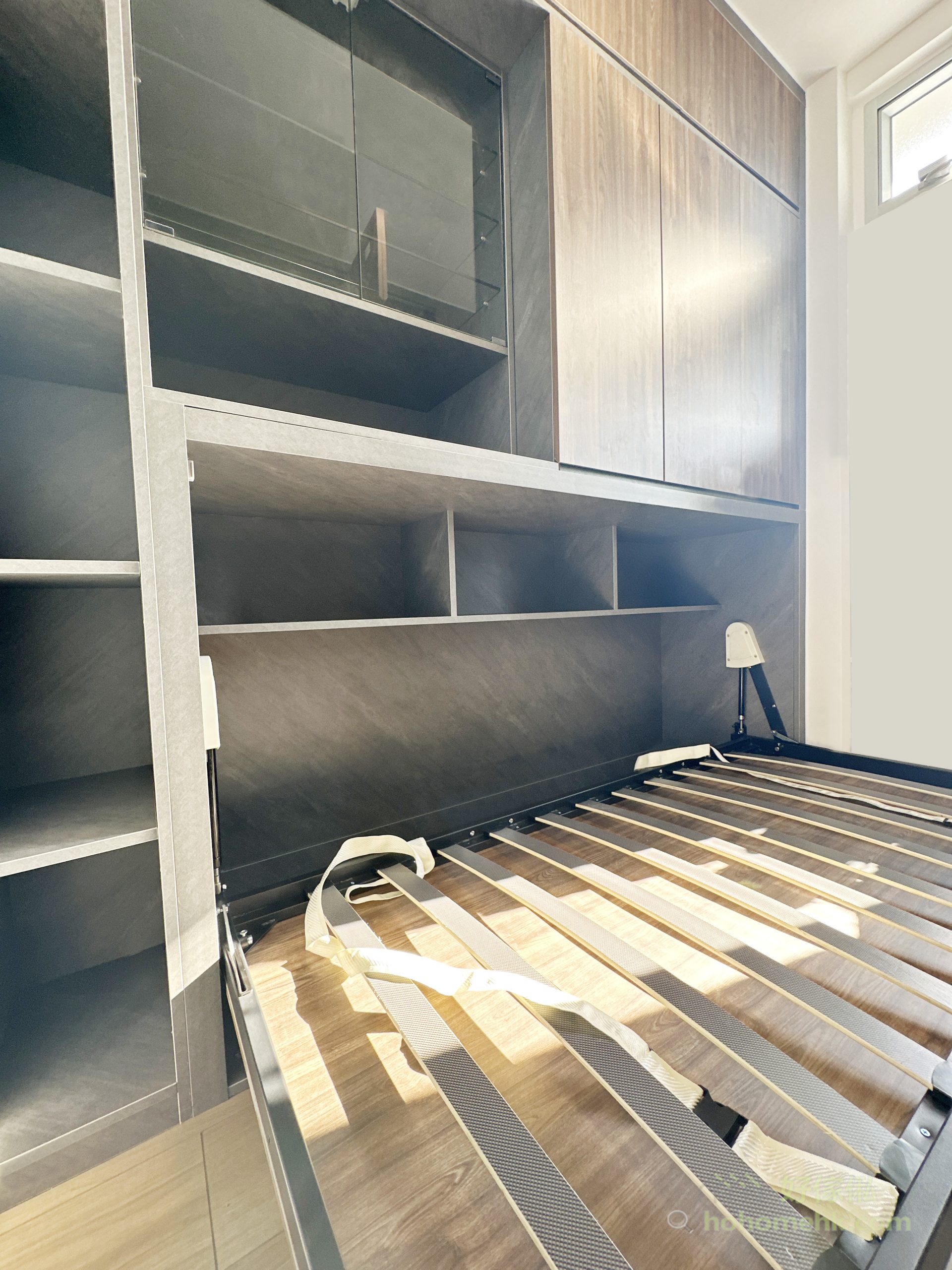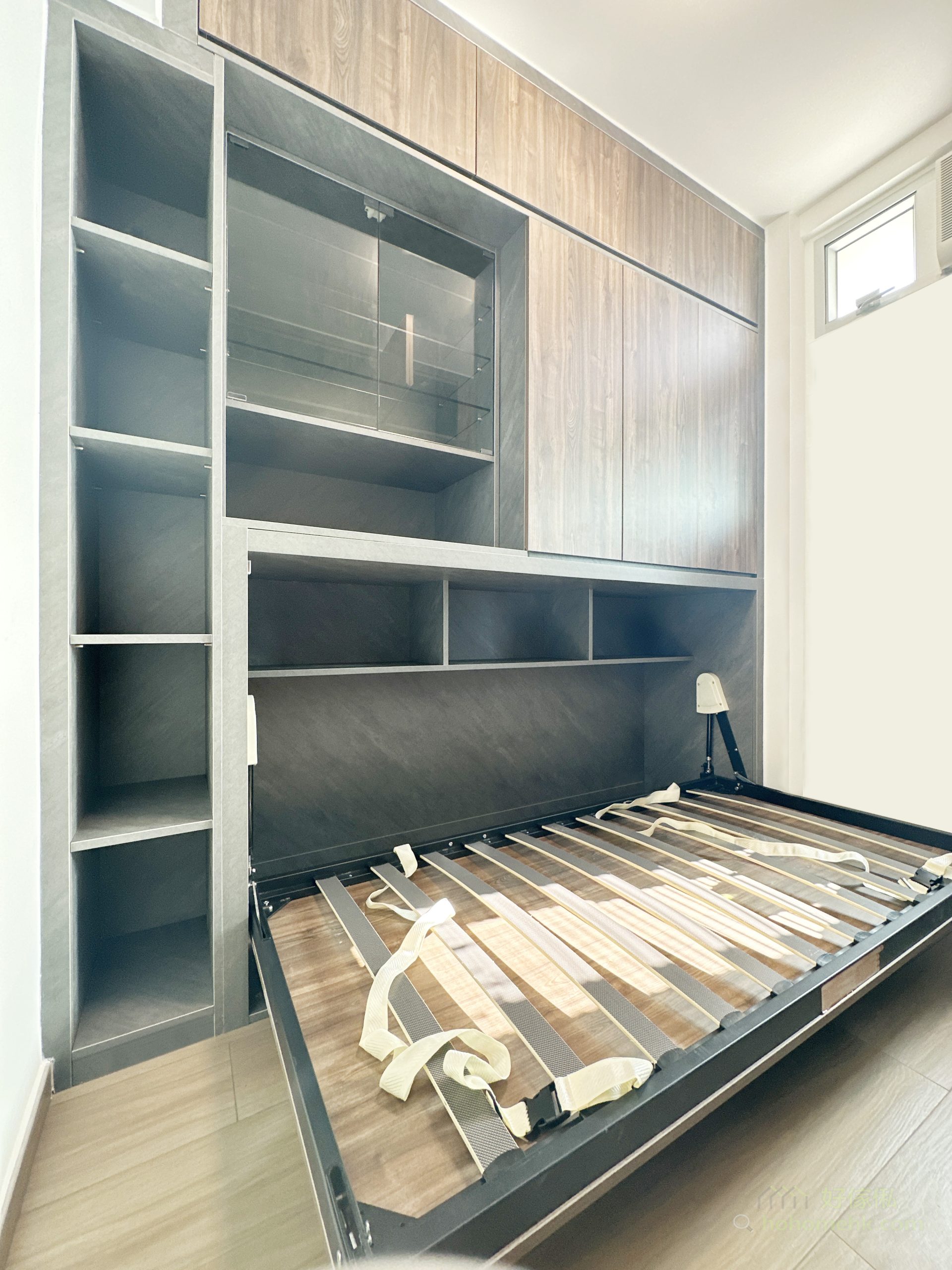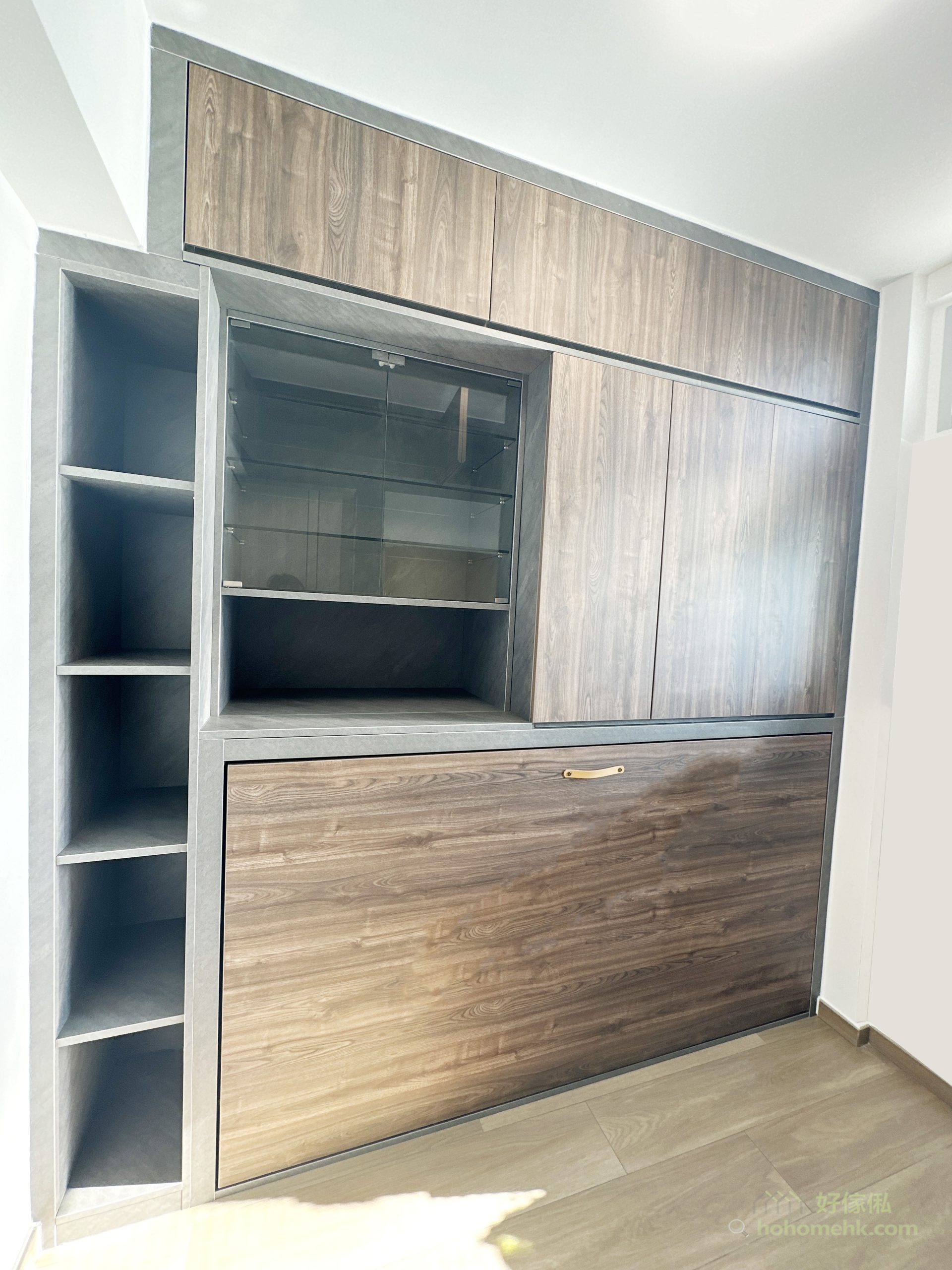 书柜上方的吊柜提供了额外的储物空间,可以存放不常用的物品,例如换季衣物或文件,进一步提高空间利用率。这款侧翻床连书柜的设计灵活多变,不仅充分利用了垂直空间,还兼顾了储物、展示与睡眠功能,特别适合香港这类空间有限的居住环境。无论是提升家居的实用性,还是增添视觉上的层次感,这款设计都能满足你的需求。如果你也想拥有这样的多功能家居,欢迎联络好家私,为你量身订造理想的家居设计!