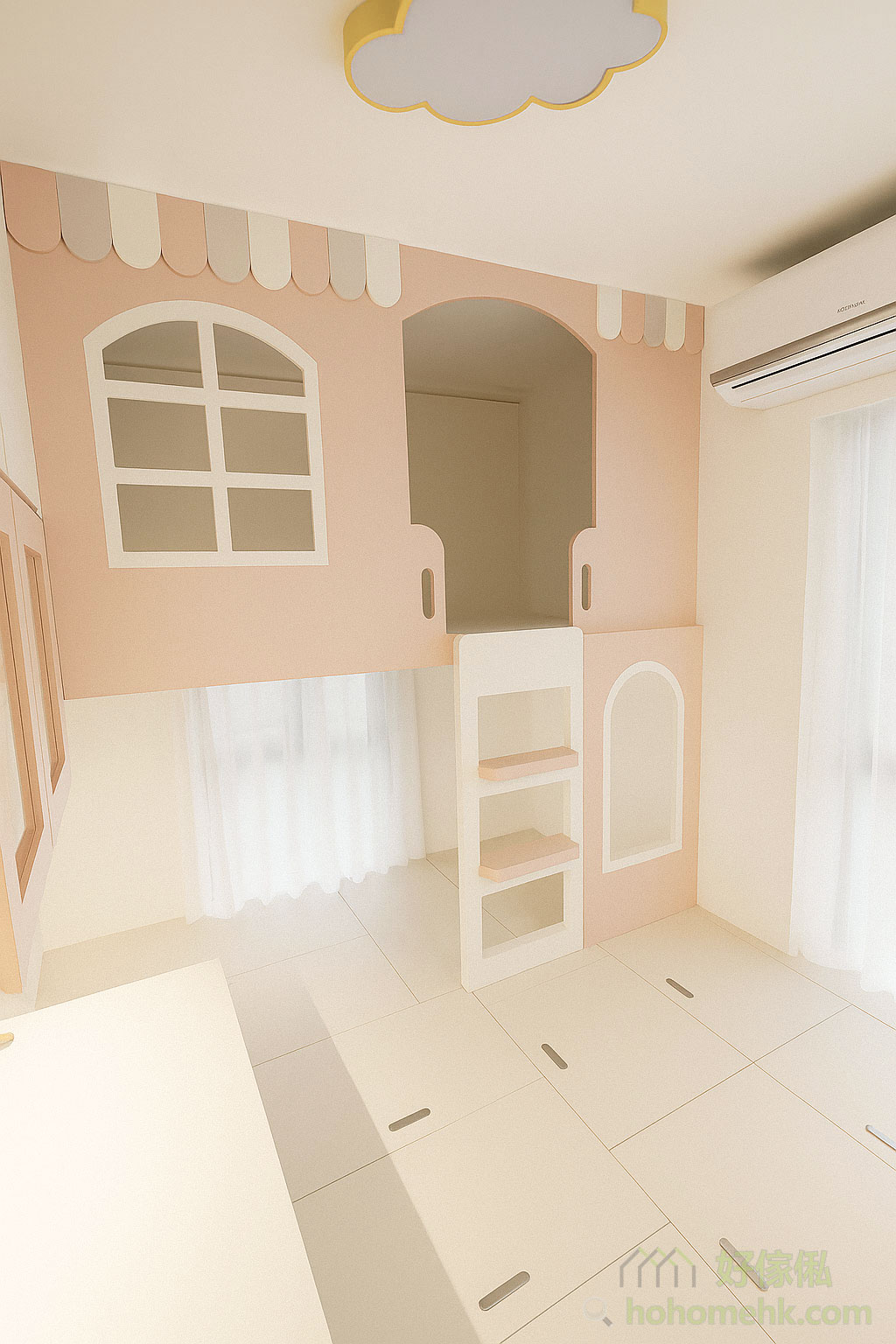 今次我们为客人在客厅订制了一款能变沙发和床的变形家具,这个变形床的五金选用高精确率油压装置,只需用双手将储物架倾斜往下拉,固定板条就会被拉出,继续往下拉,一张大床就会被拉出,最终大床与地面平衡,而储物架就成了大床的支撑板,也可以继续当储物架使用。这个设计悭位实用,很适合单身小居室使用。变形床的尺床可以是4尺床、5尺床、或是6尺床的。家具会用拉爆螺丝直接固定在牆上,防置床下降时将整个柜拉倒。在放下来之后,沙发的靠背可以放到床头,当枕头用。变形床旁边加设了书桌和开放式挂牆层架,而最右边侧是一个4门的大衣柜。一个小空间入面有齐,床、沙发、衣柜和书桌,将空间的实用度发挥到最高。所有板材都选用实木细芯夹板,板材坚固耐用,可以承受1万次开合,横向和纵向都可以承受1吨以上的拉力。