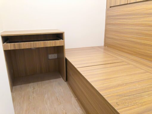 今次我们为客人定制的家具就是间房衣柜连地台和书桌。