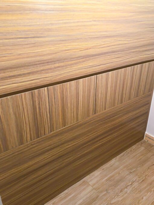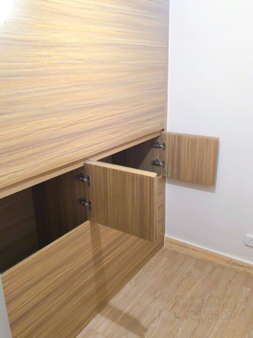 典形旧式公屋水喉管比较多,所以在定制这个双面柜时我们师传也特别小心量度原来喉管的尺,预留足够的空位给喉管穿过,同时空位太多发挥不了隔音和隐私的效果。