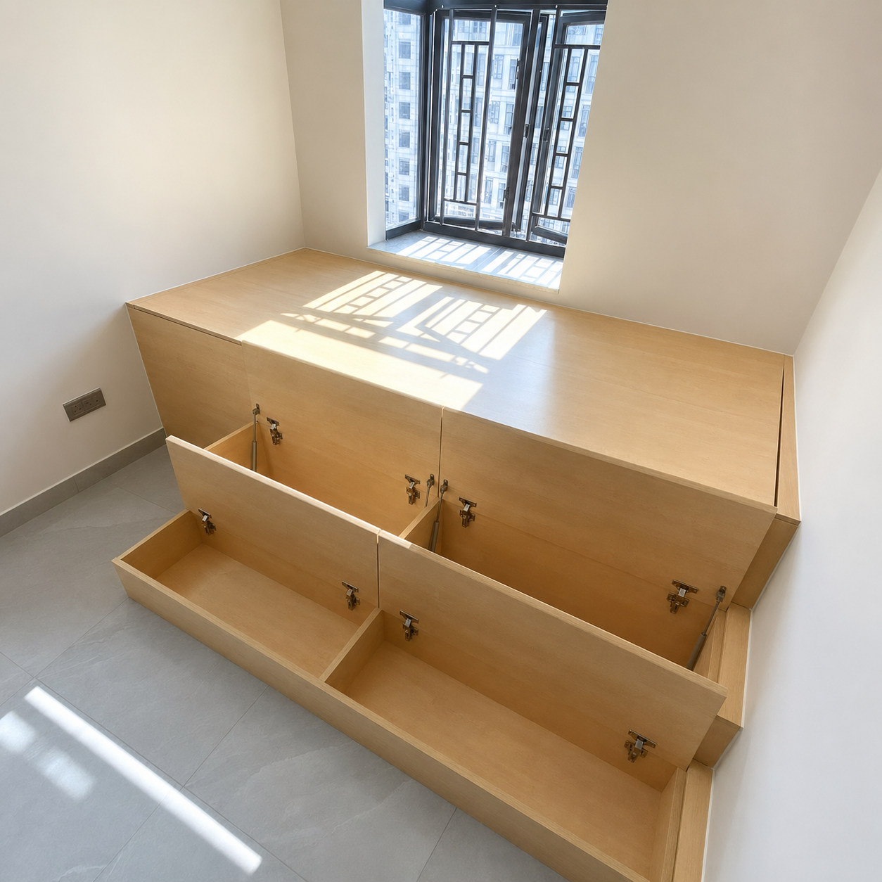 有些人会在上下床底加装一张拉出式的子母床,让空间可以拥有三张床,但子母床的缺点是每天起床后都要收拾床铺,才可以把子床推回床底,不占据白天的活动空间。加上由于每次睡觉都要先拉出子床,再从储物箱拿出枕头和被铺才可以睡觉,如果假期或生病时想午睡就比较不便了。