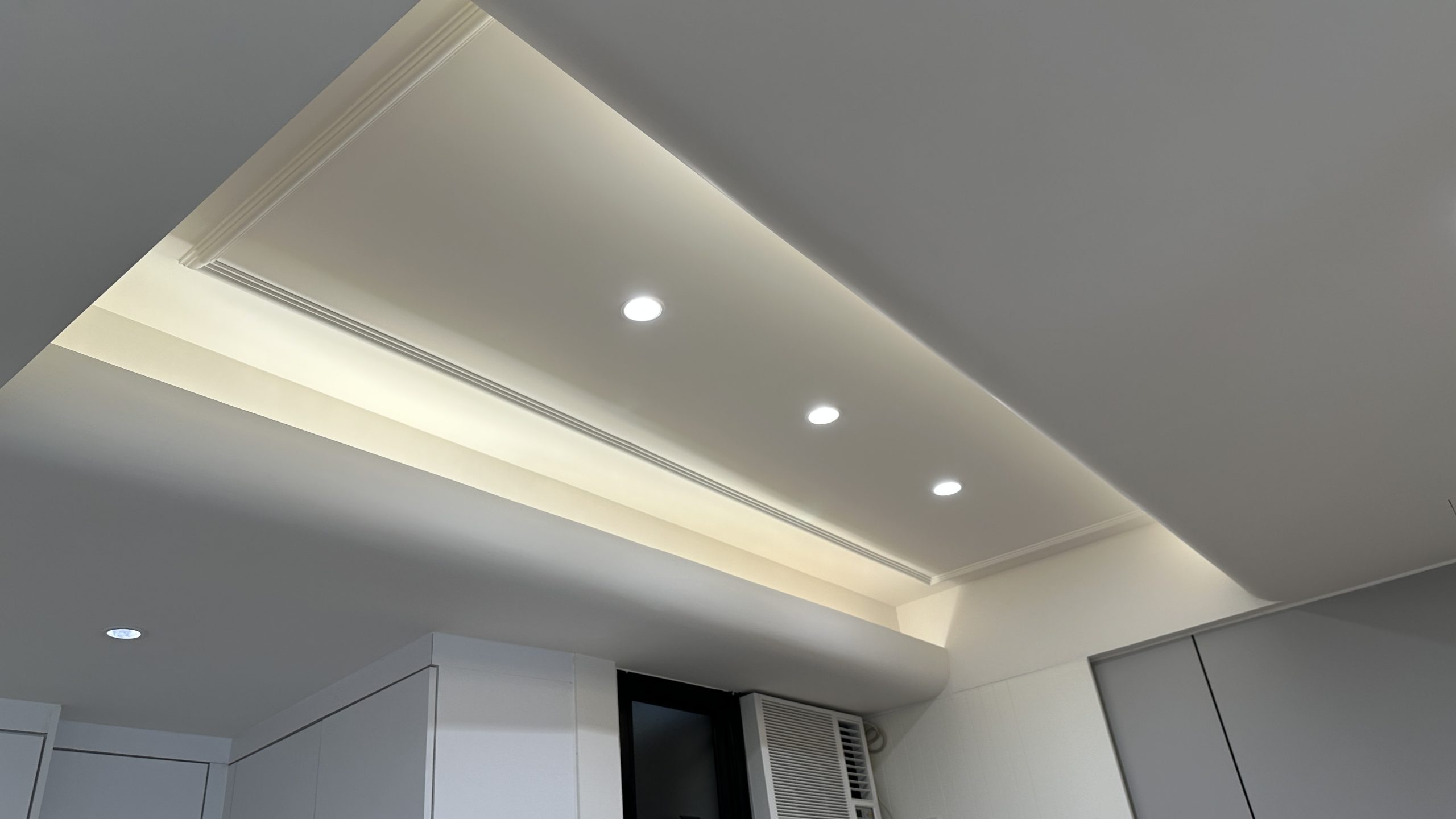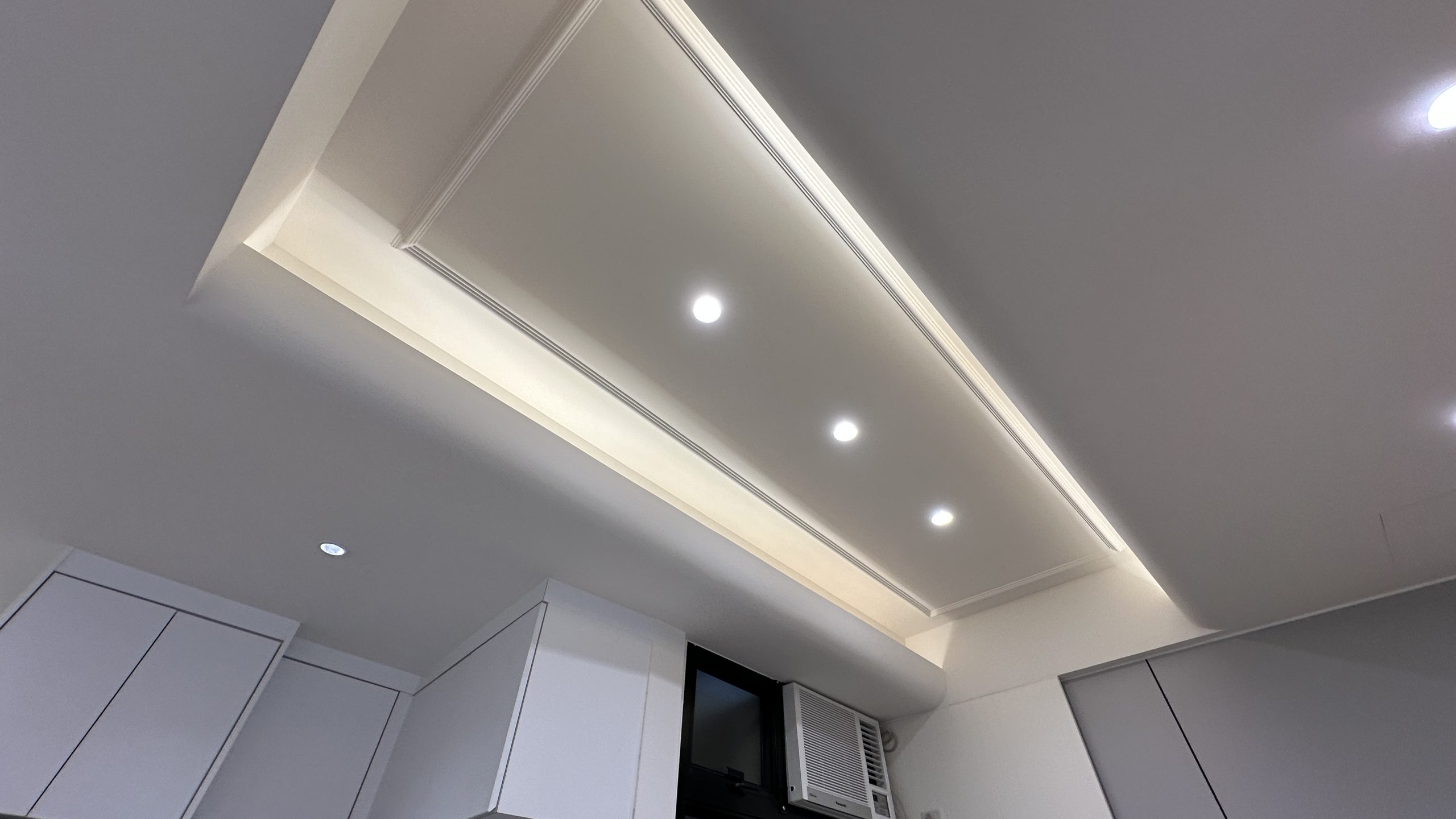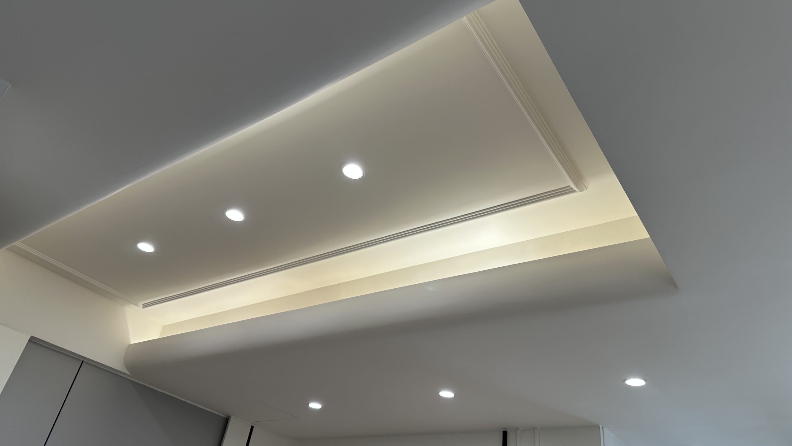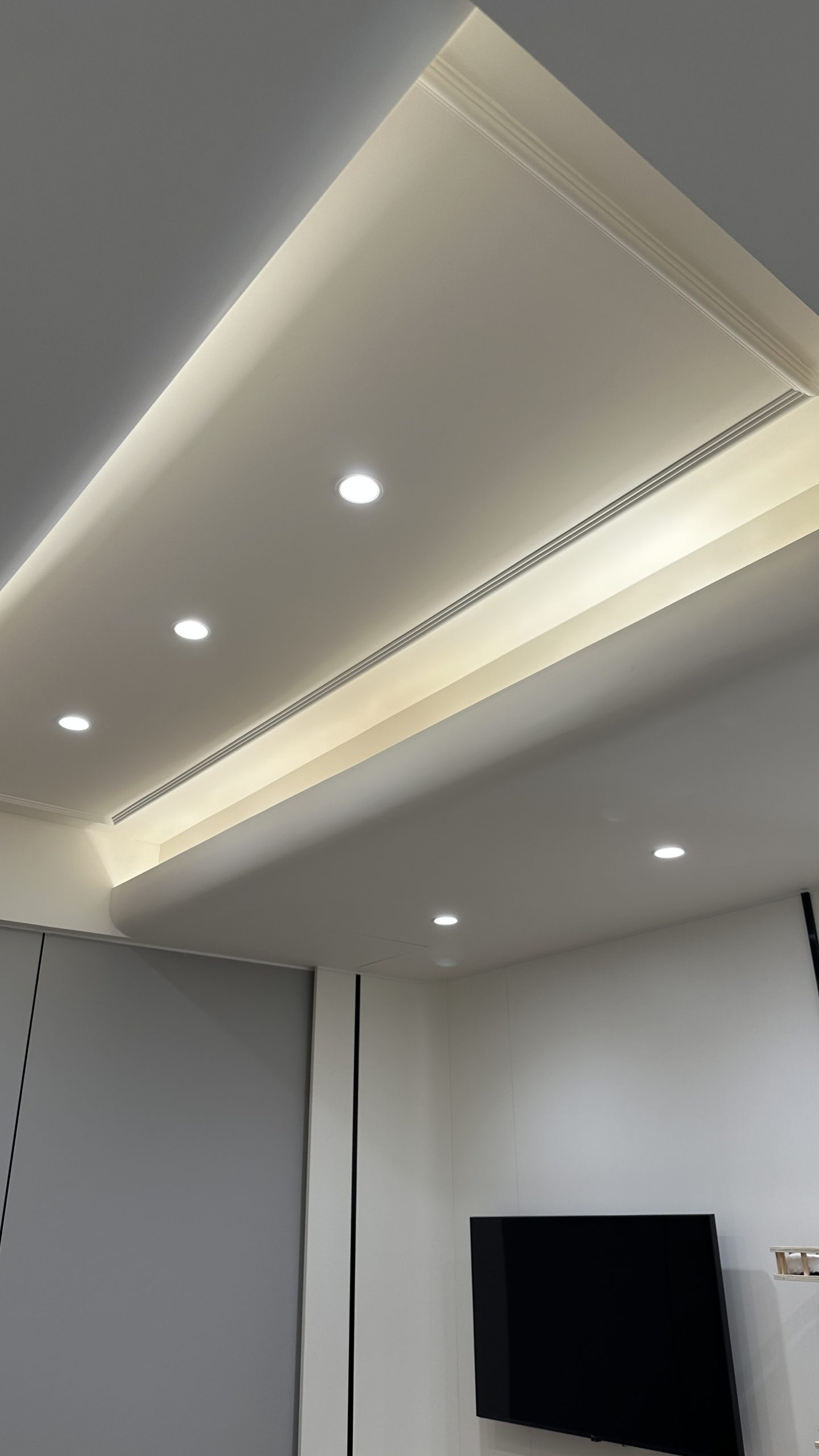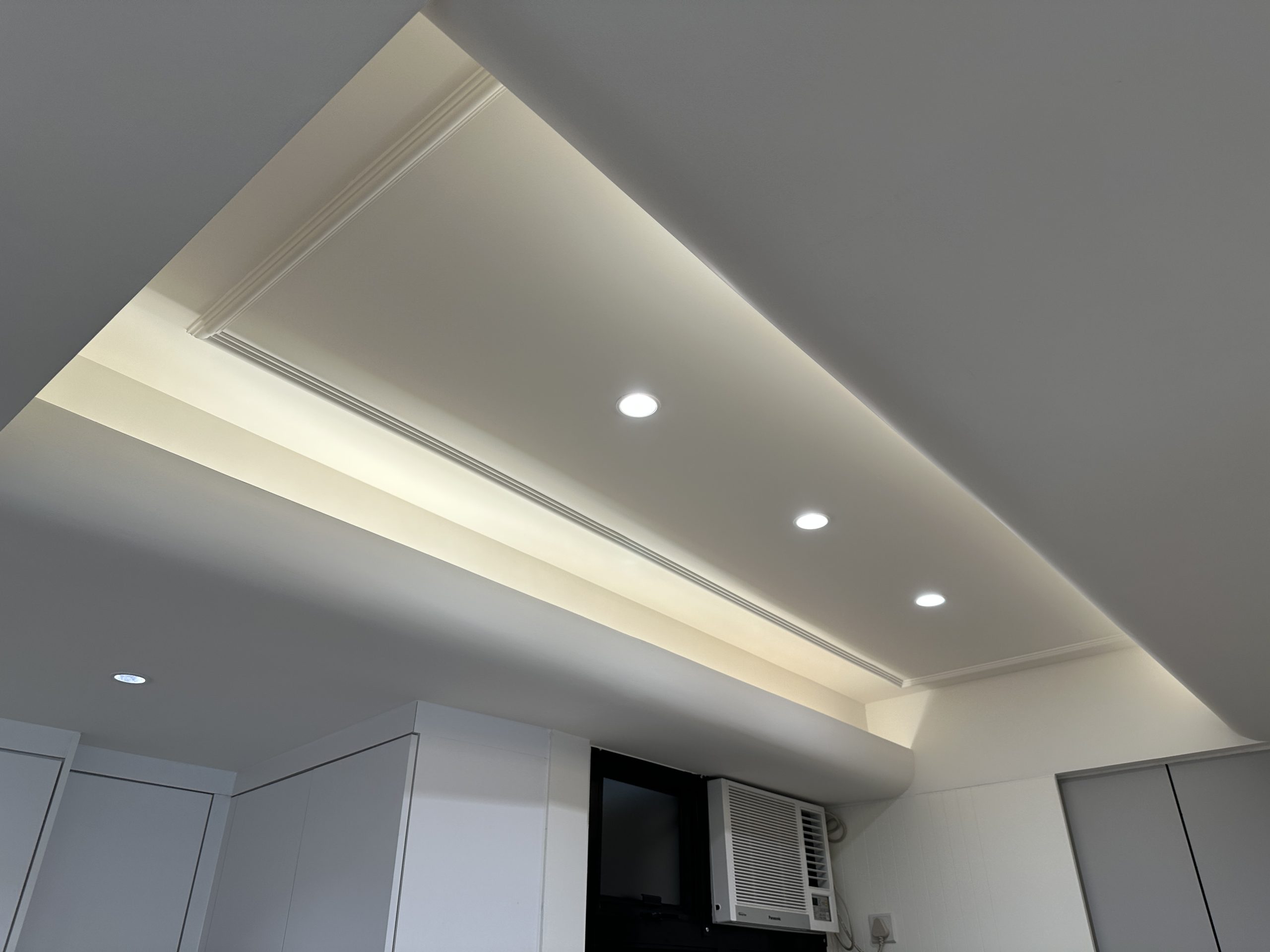 如需要装修工程报价,请与我们的设计师联系。客厅灯槽及假天花工程连轨道灯大功告成,不同空间做不同款式的灯糟及假天花都可以,可以与设计师倾倾。
