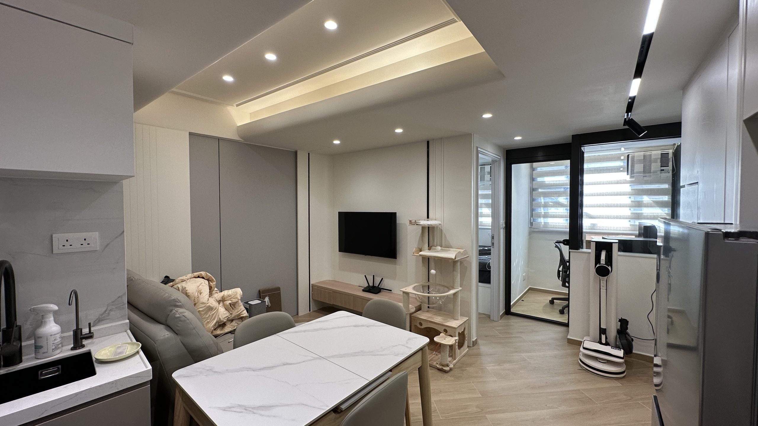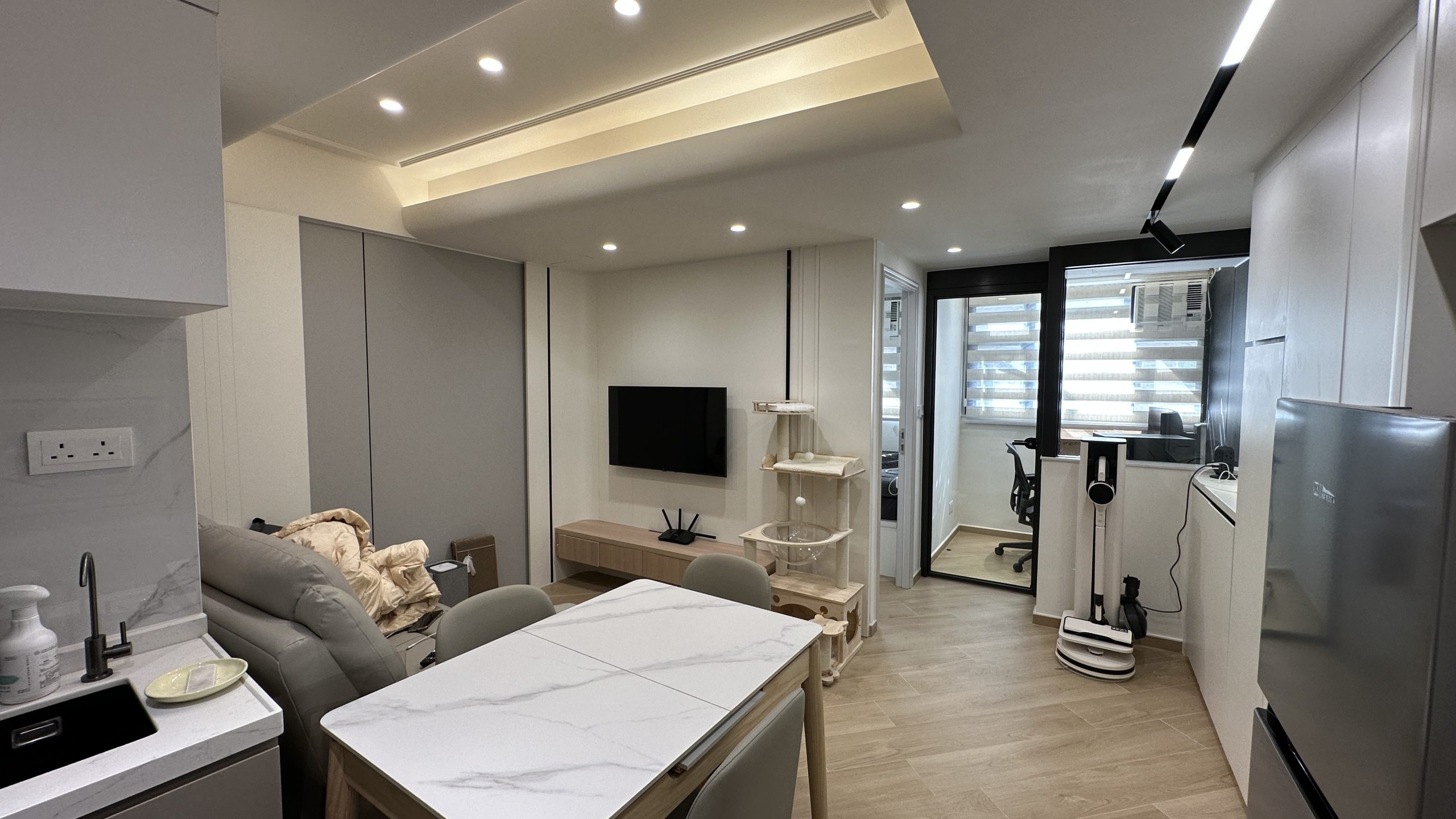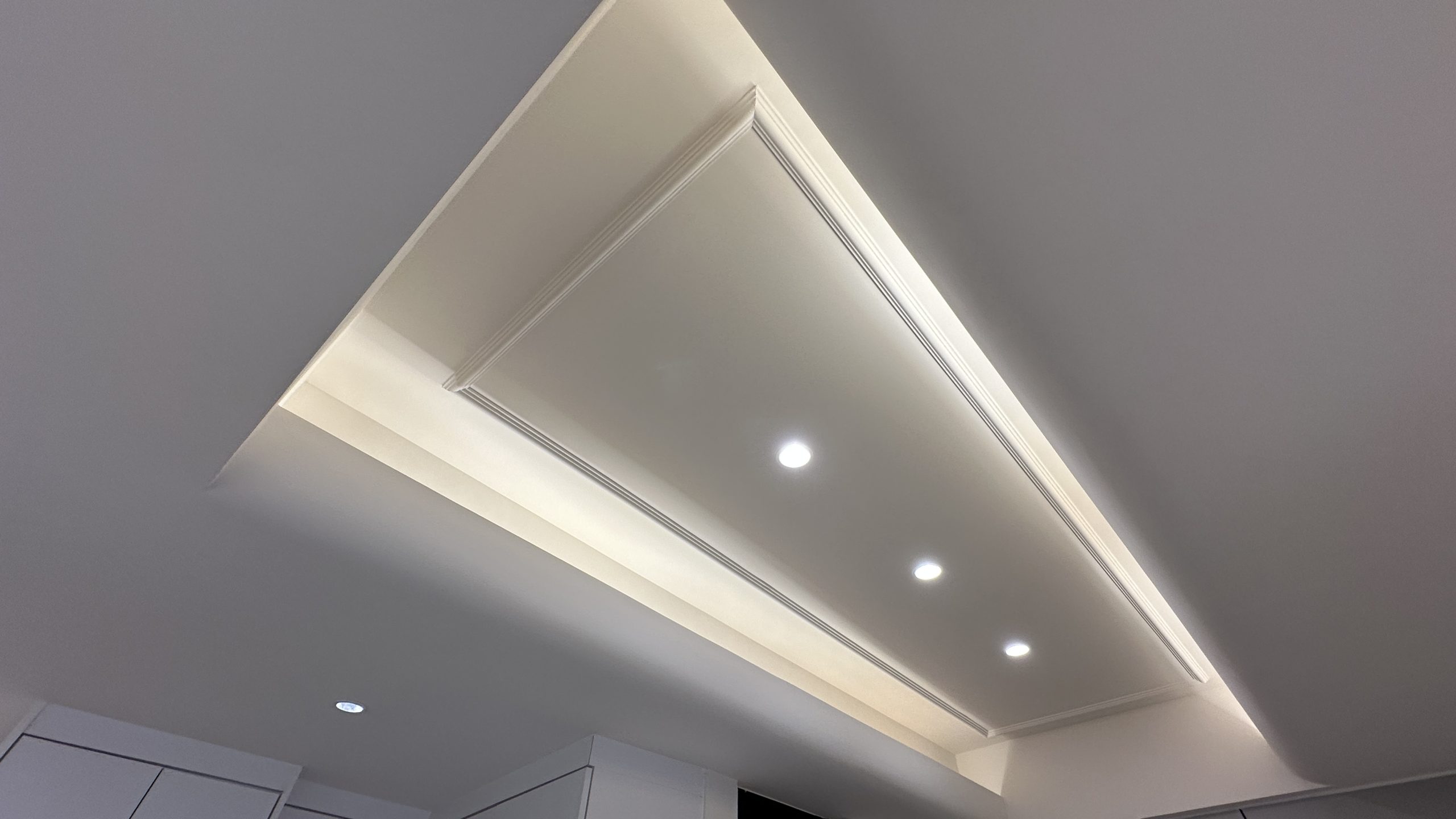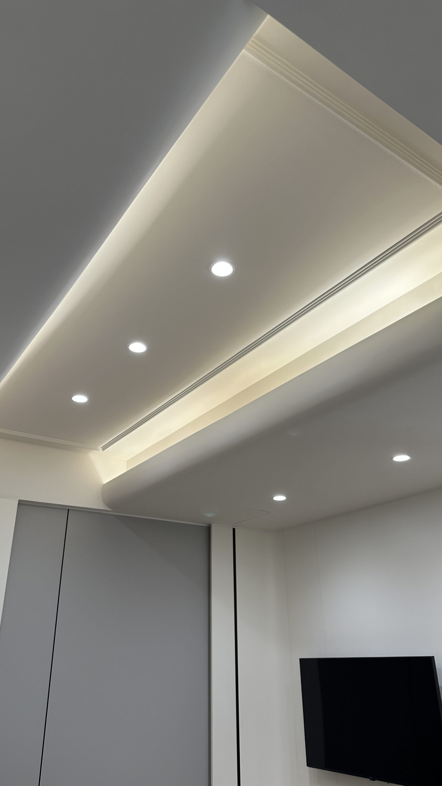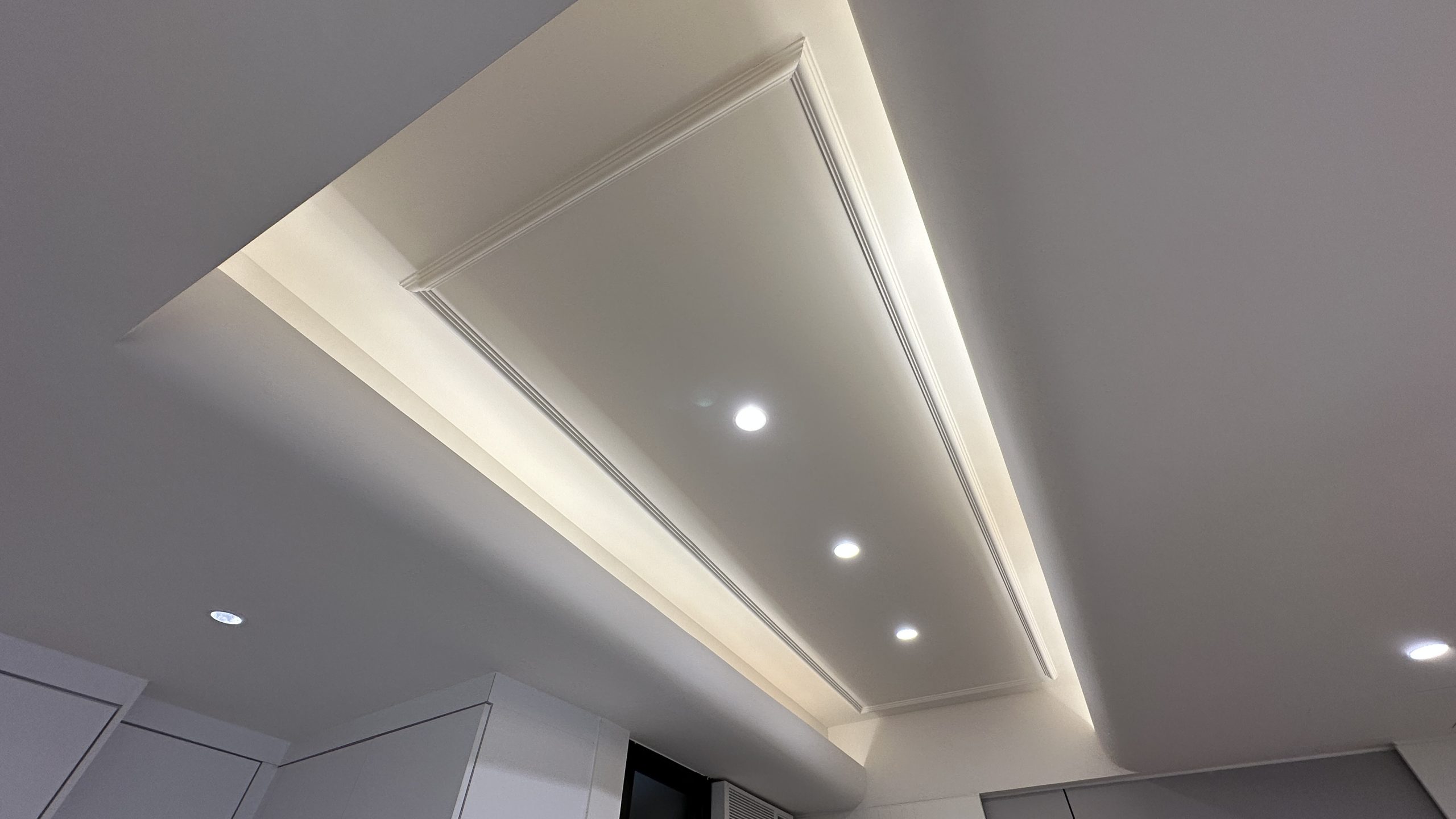 如需要装修工程报价,请与我们的设计师联系。客厅灯槽及假天花工程连轨道灯大功告成,不同空间做不同款式的灯糟及假天花都可以,可以与设计师倾倾。