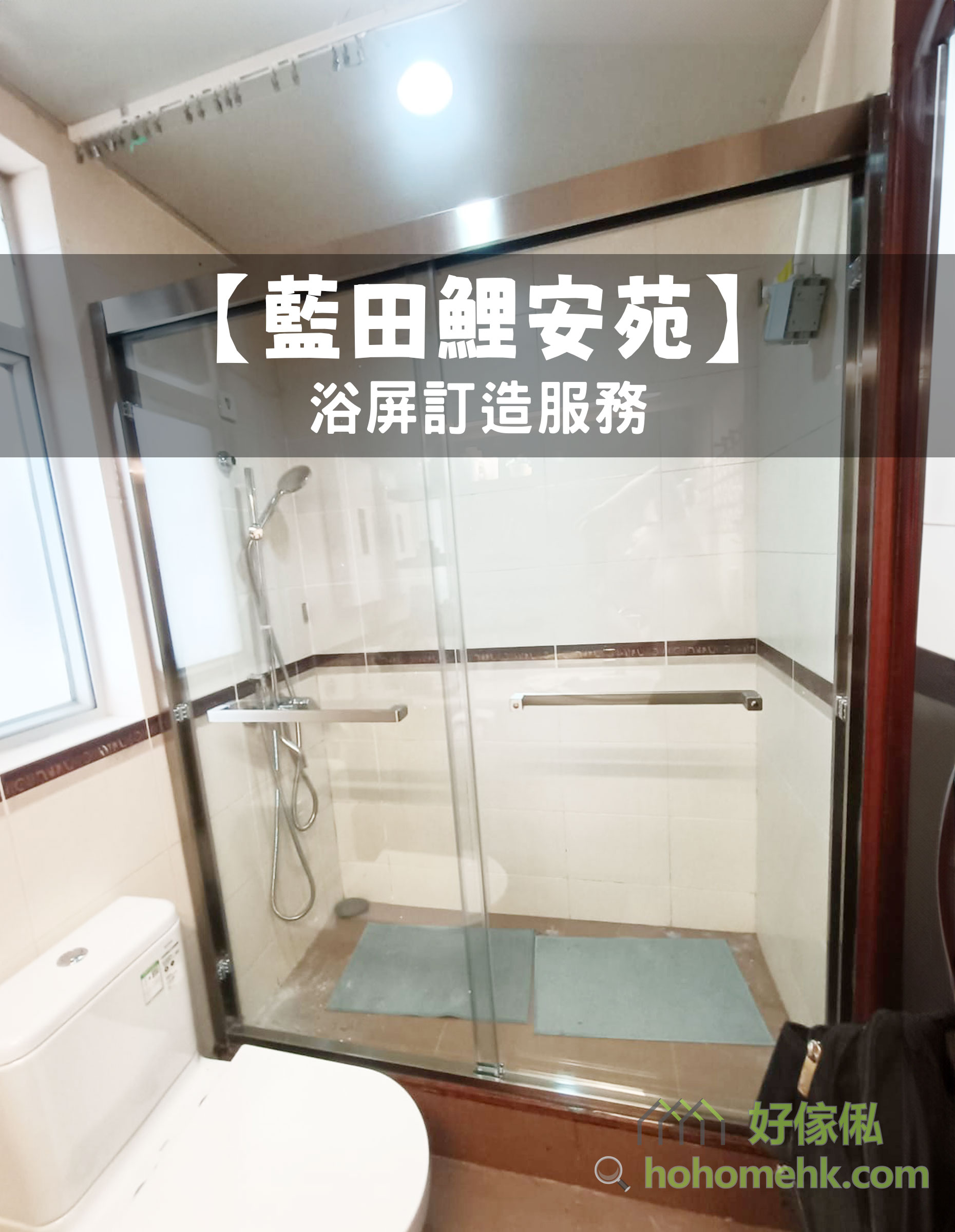 蓝田鲤安苑鲤景阁浴屏订造服务(不锈钢框,拉丝银,一字形,双趟门,配清玻璃),包送货及安装,可升级清拆及弃置旧浴屏选项。