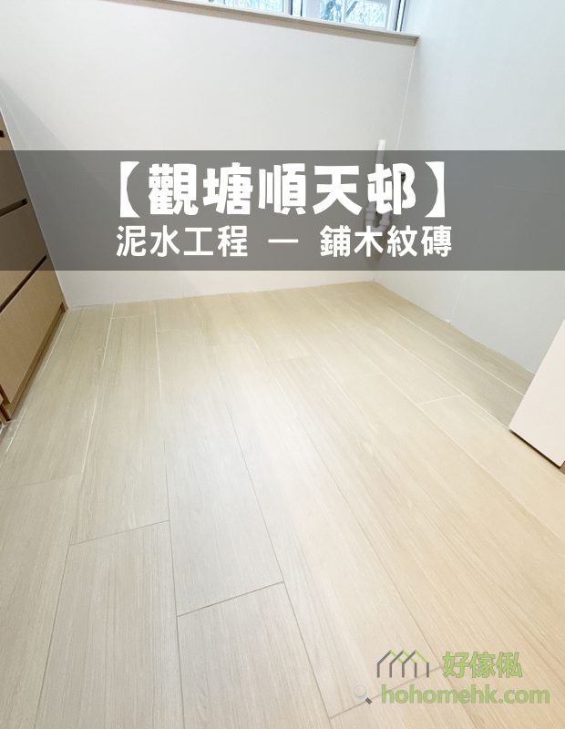 观塘顺天邨泥水工程—客厅及房间铺木纹砖(乱工铺)!木纹砖防水防潮,容易打理及清洁,使用寿命都比木地板及石塑地板长。好家私|您的室内设计及全屋装修专家