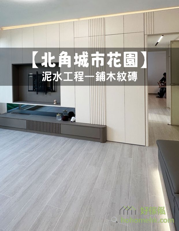 如需要装修工程报价,请与我们的设计师联系。北角城市花园泥水工程—客厅及房间铺木纹砖(乱工铺)大功告成!木纹砖防水防潮,容易打理及清洁,使用寿命都比木地板及石塑地板长。